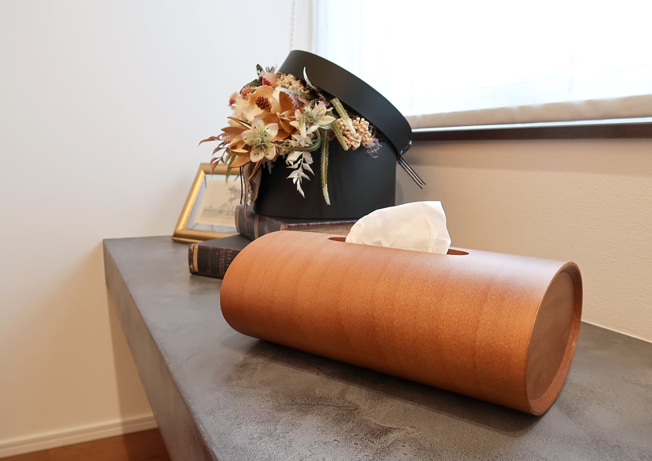 そよ風に揺られるような柔らかいフォルムのティッシュボックスケースSWING。直線的な角型のボックスティッシュを、ブナコの得意な「曲線で包み込む」ことで生まれた柔らかい形が、お部屋の中で主張しすぎず、インテリアをオシャレにします。